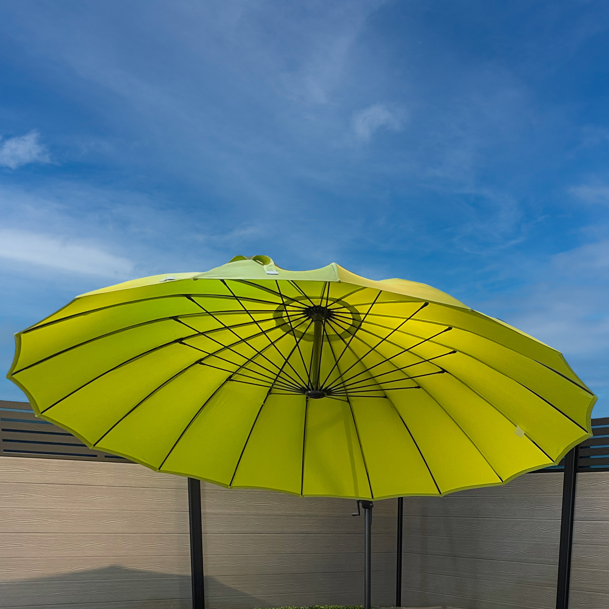 Inspired by the Zhongguo sǎn (English translation; Chinese Parasol) we have designed the Shanghai Parasol and Cantilever Range. The Zhongguo sǎn is believed to have existed over two thousand years ago. The first made from silk which would be waxed and lacquered as oil repeals water.